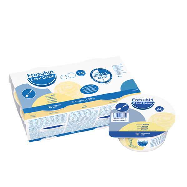 Fresubin 2 kcal Crème is een volwaardige lepelbare vervangvoeding, boordevol energie (2,0 kcal/g) en hoogwaardige eiwitten, zonder voedingsvezels. Deze voeding voorziet het lichaam van de nodige energie, wanneer gewone voeding niet volstaat. De rijke formule bevat goed opneembare eiwitten en alle essentiële vitaminen en mineralen. Het is een kant-en-klare voeding die geschikt is als enige voedingsbron